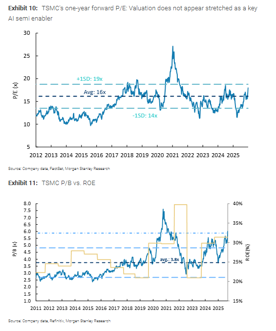从估值角度看,台积电股价目下为分析师2027年每股收益预测的15倍,接近2018年以来16.5倍的平均远期市盈率。分析师觉得这一水平终点具有招引力。