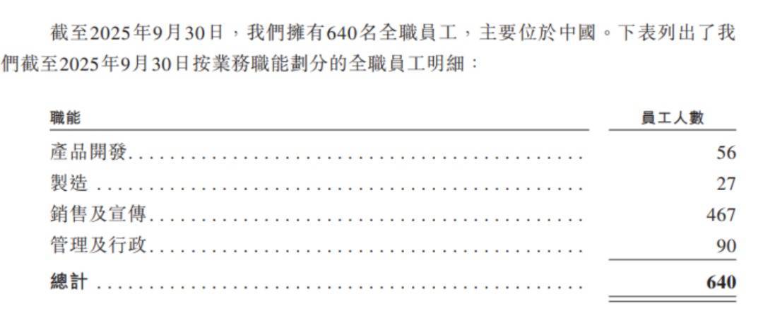 字据招股书,截止2025年9月30日,公司领有640名全职职工,其中制造措施职工仅27东说念主,坐褥完全依赖62家OEM制造商,自有工场2025年10月才小范围投产,仅能消散少数品类,品控把控身手极弱。